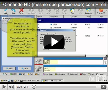 No vídeo clonamos um HD de com Windows XP e Utilitários instalados para um NOVO HD de um pouco maior que o HD original.